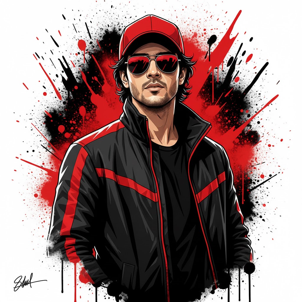 Street Art Style Portrait with Red Cap